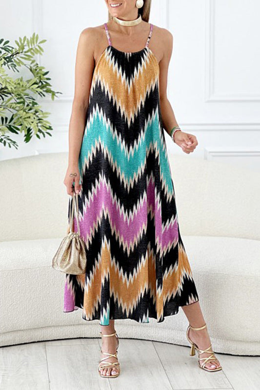 Bohemia V Neck Tie Waist Printed Maxi Cami Dress