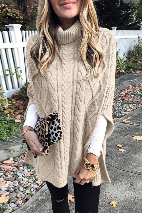 Solid Turtleneck Slit Sleeve Cloak Sweater