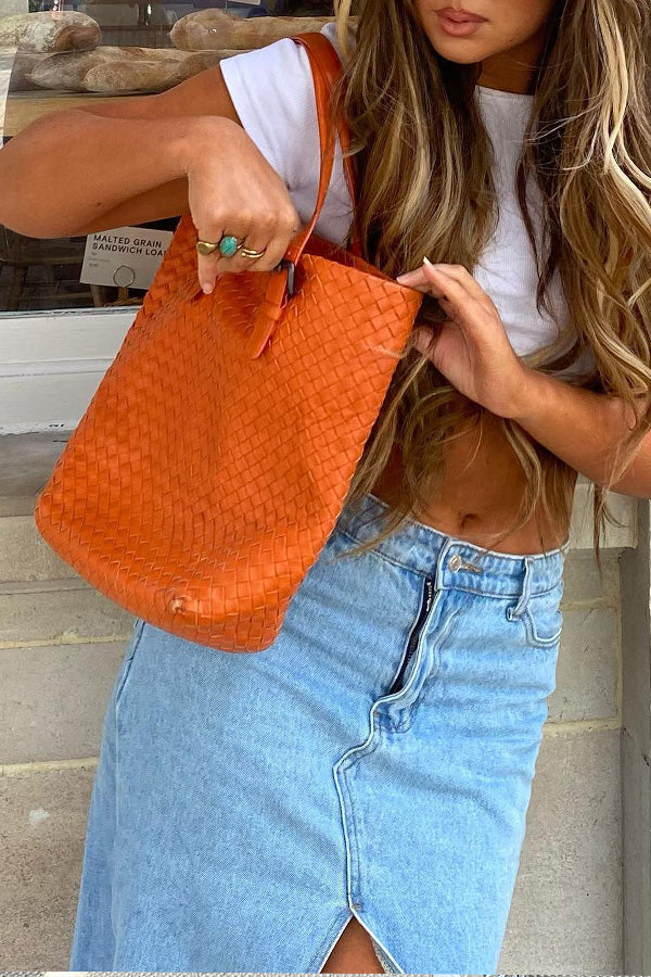 Retro Casual Bucket Bag with Wide Shoulder Retro Casual Handbag