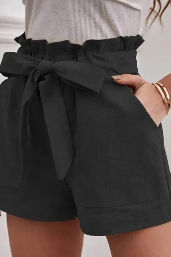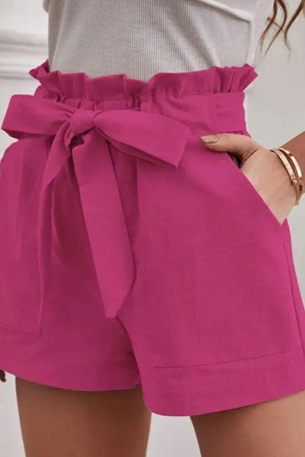 Casual Loose Solid Color Elastic Waist Tie Shorts