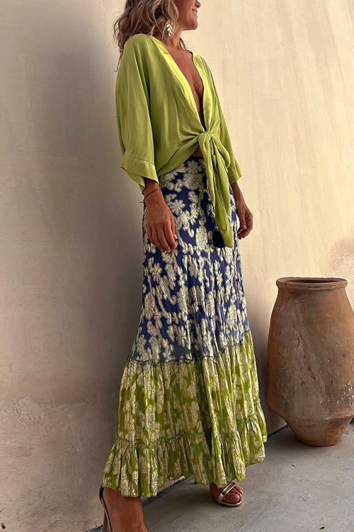 Rachel V Neck Tie Knot Front Solid Top
