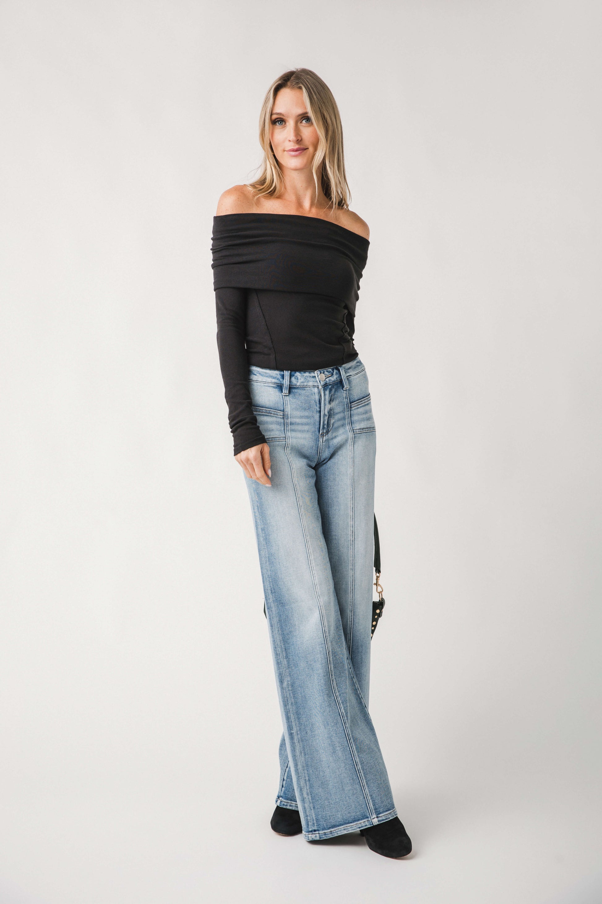 Risen Aria Angled Pocket Front Seam Wide Leg Jeans